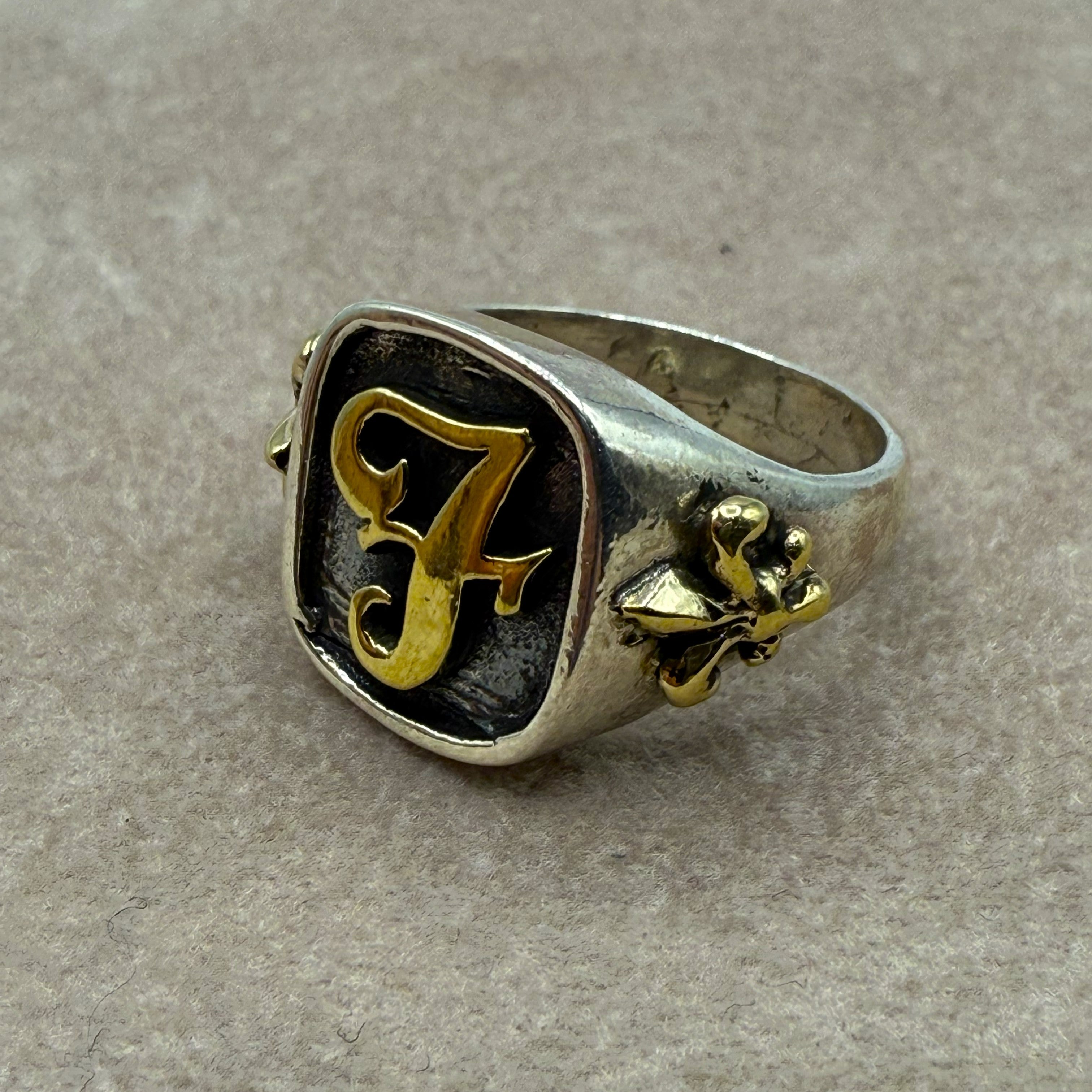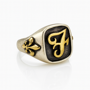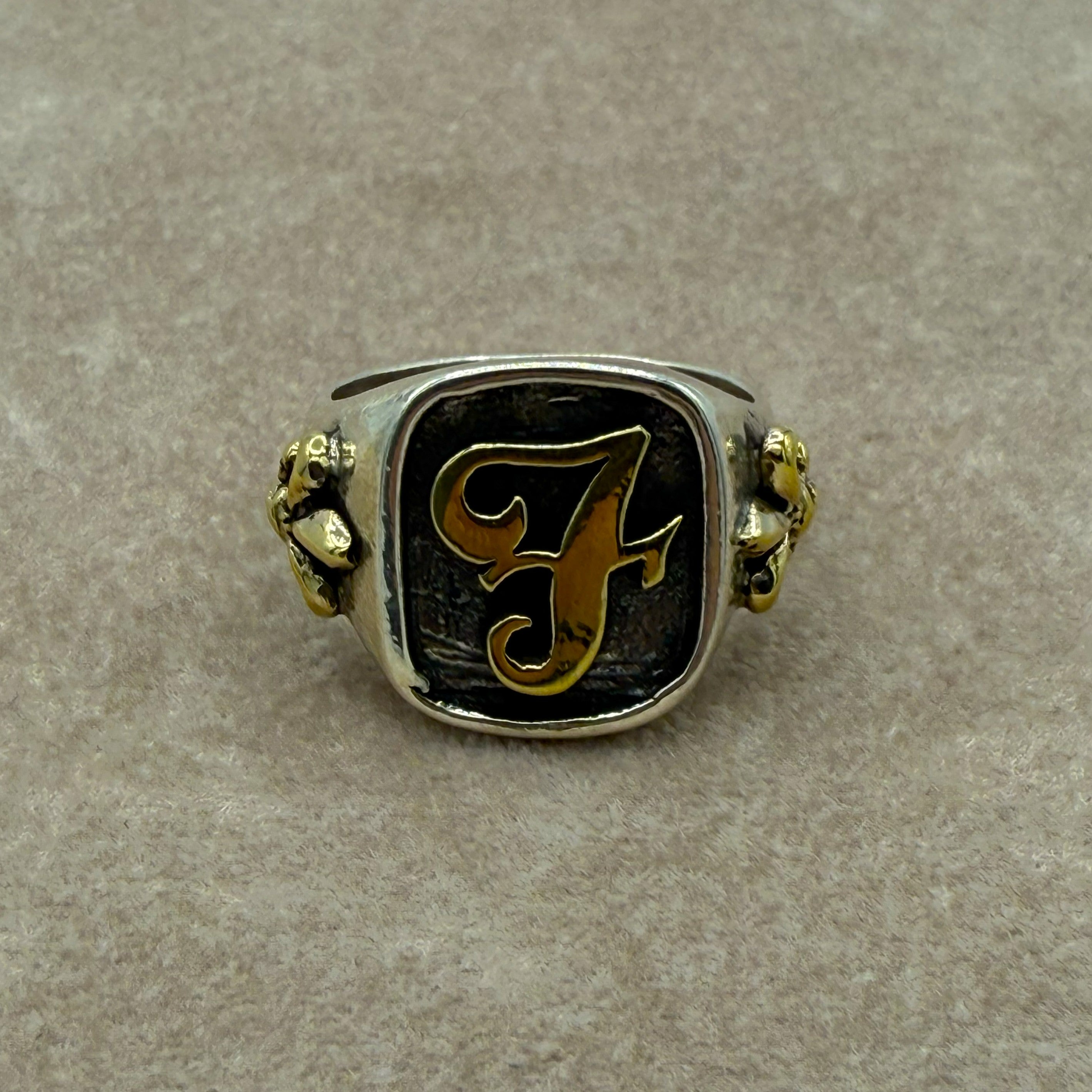 Anello In Argento 925 Battuto a Mano Con Lettera F Corsiva A225