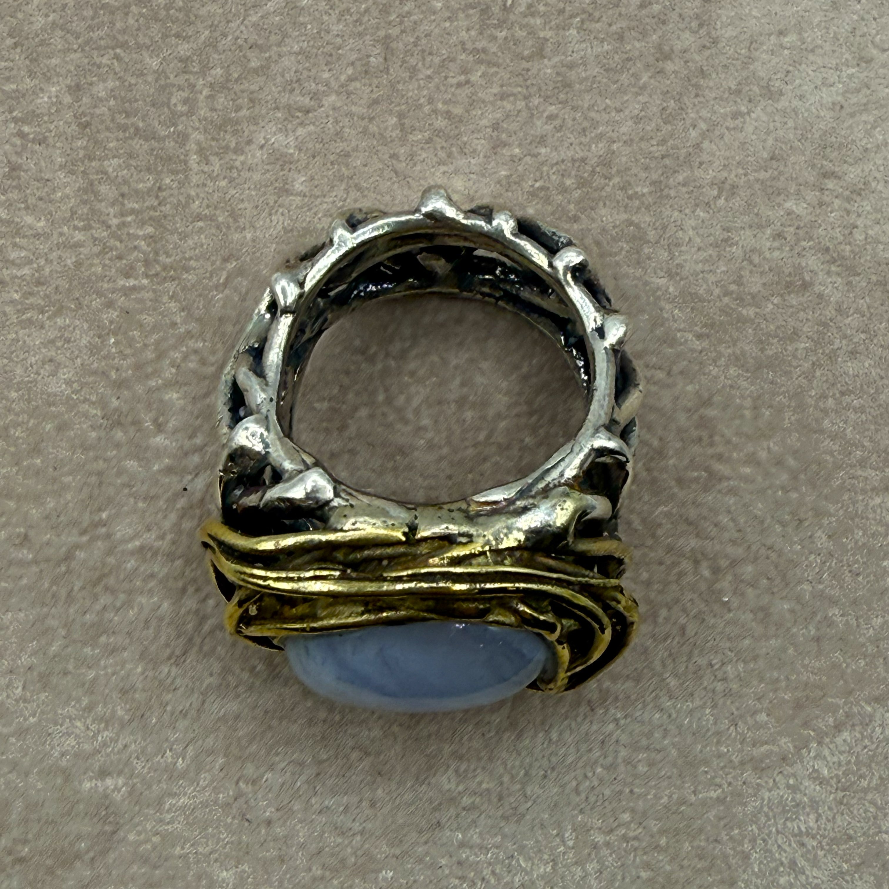 Anello In Argento 925 Con Agata Blu Centrale A124