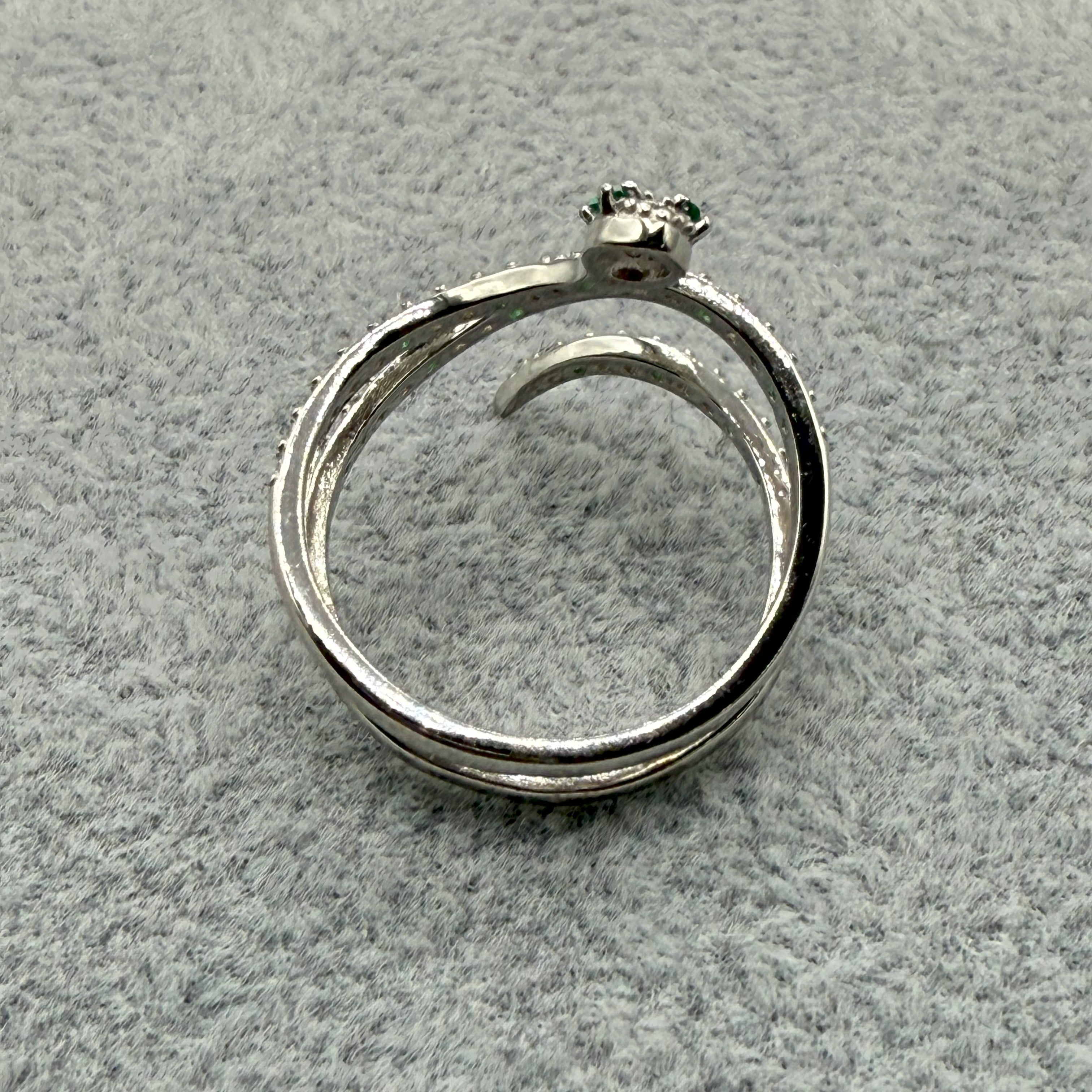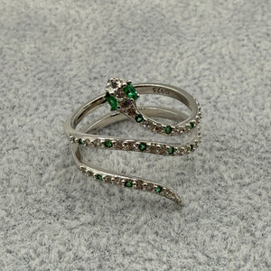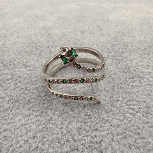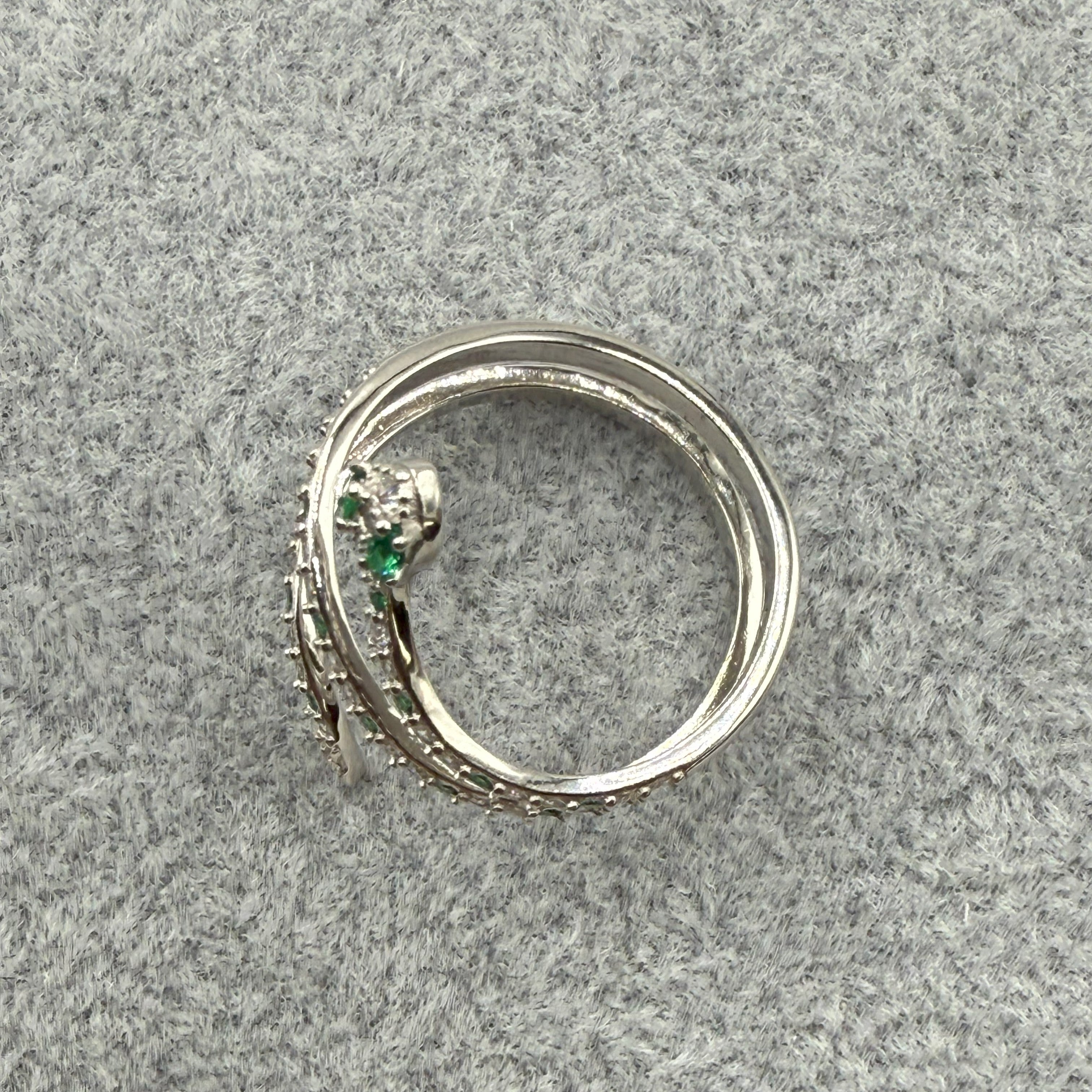 Questo anello in Argento 925 a forma di serpente si distingue per un design audace e distintivo, arricchito da zirconi bianchi alternati a pietre verdi color smeraldo. La combinazione di colori crea un effetto visivo sofisticato, mentre la forma sinuosa del serpente dona dinamismo e originalità. Un gioiello perfetto per chi desidera un accessorio elegante con un carattere deciso e un tocco di colore raffinato.