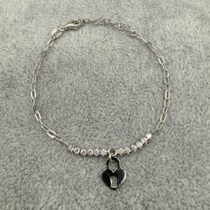 Bracciale Argento925 Con Zirconi E Cuore A Forma Di Lucchetto Art.9946