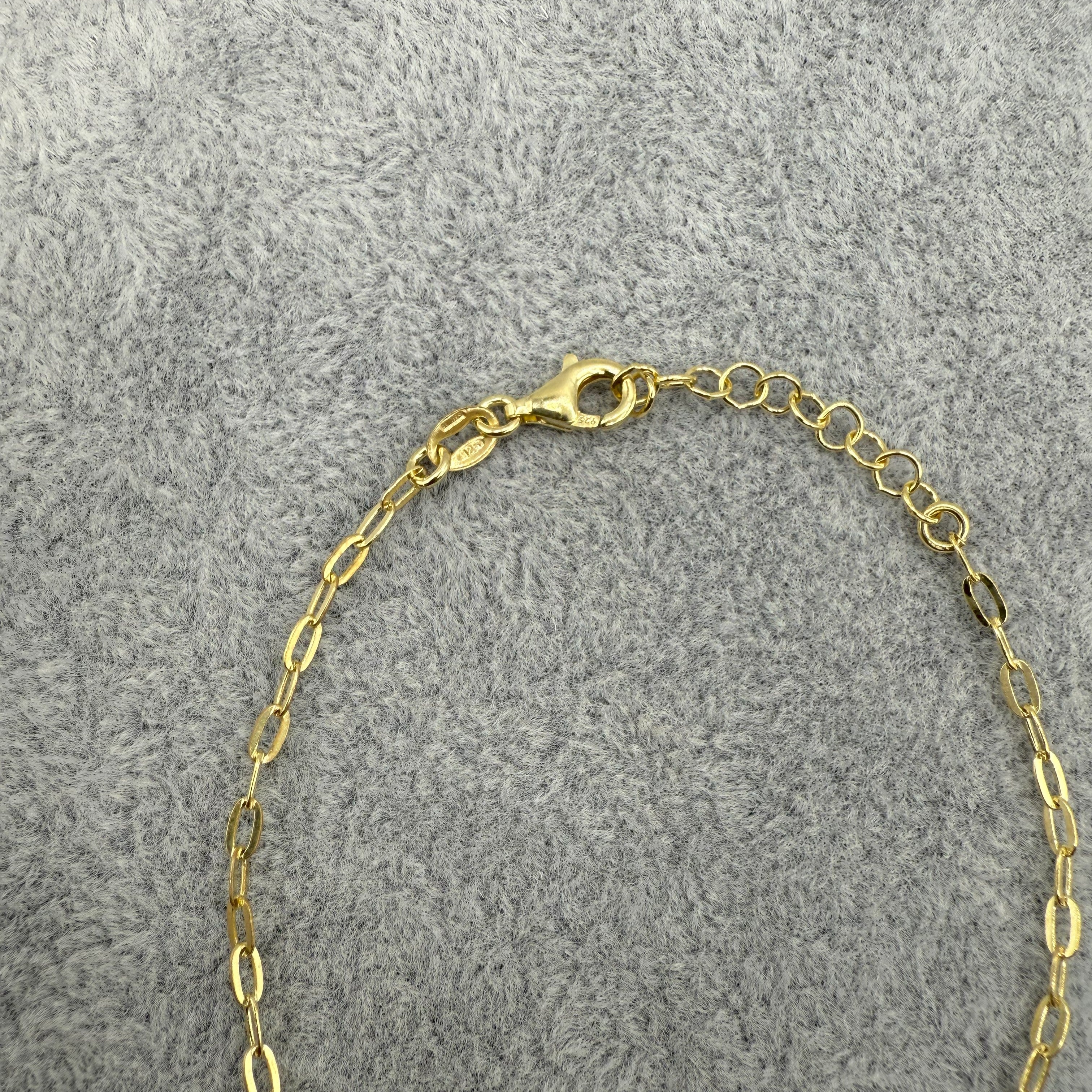 Questo bracciale in argento 925 dorato è caratterizzato da una stella raffinatamente decorata con zirconi scintillanti, che aggiungono un tocco di luce elegante e discreta. Realizzato con materiali di alta qualità, garantisce durata e un design sofisticato, ideale per valorizzare qualsiasi outfit con un dettaglio prezioso e simbolico.