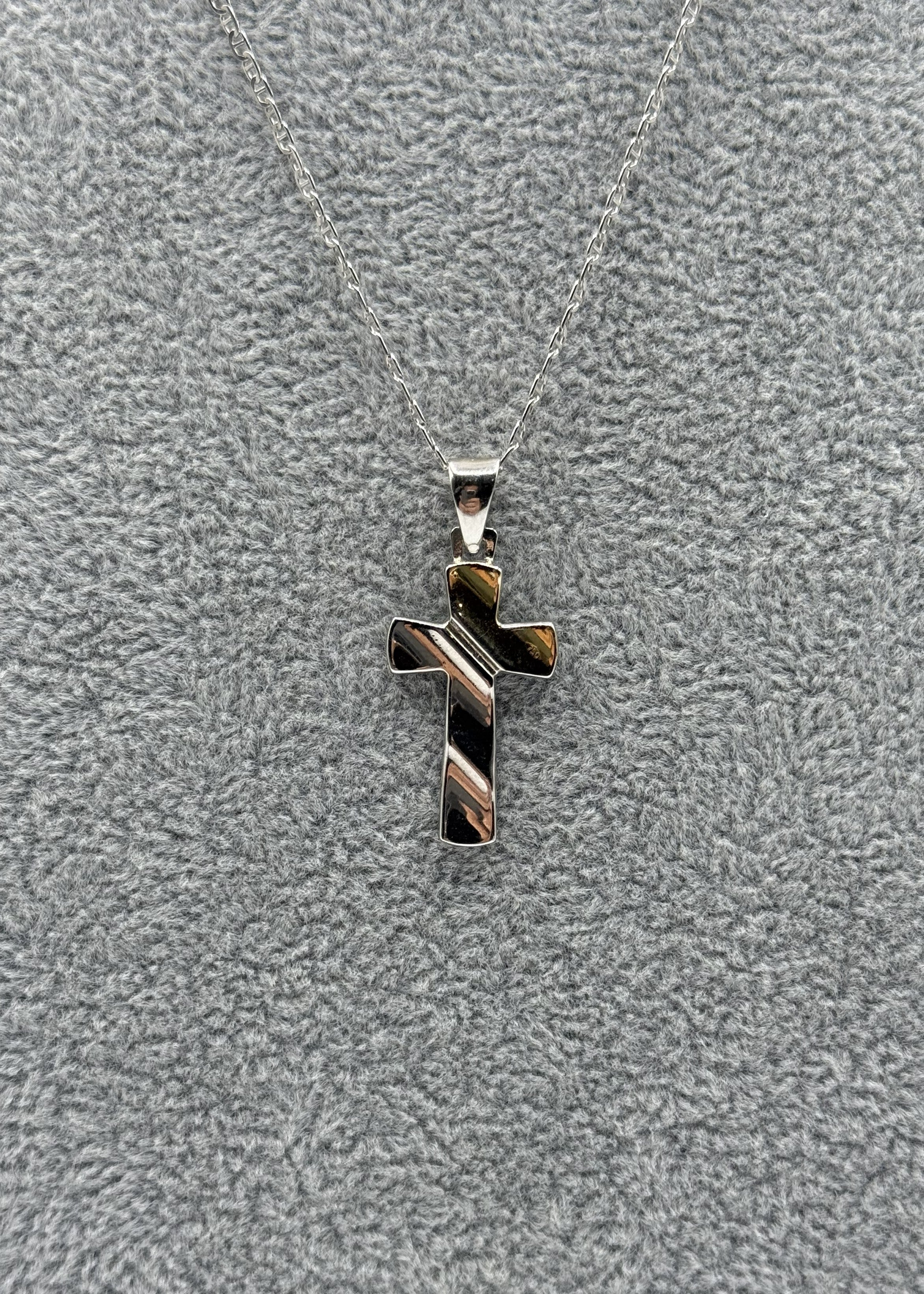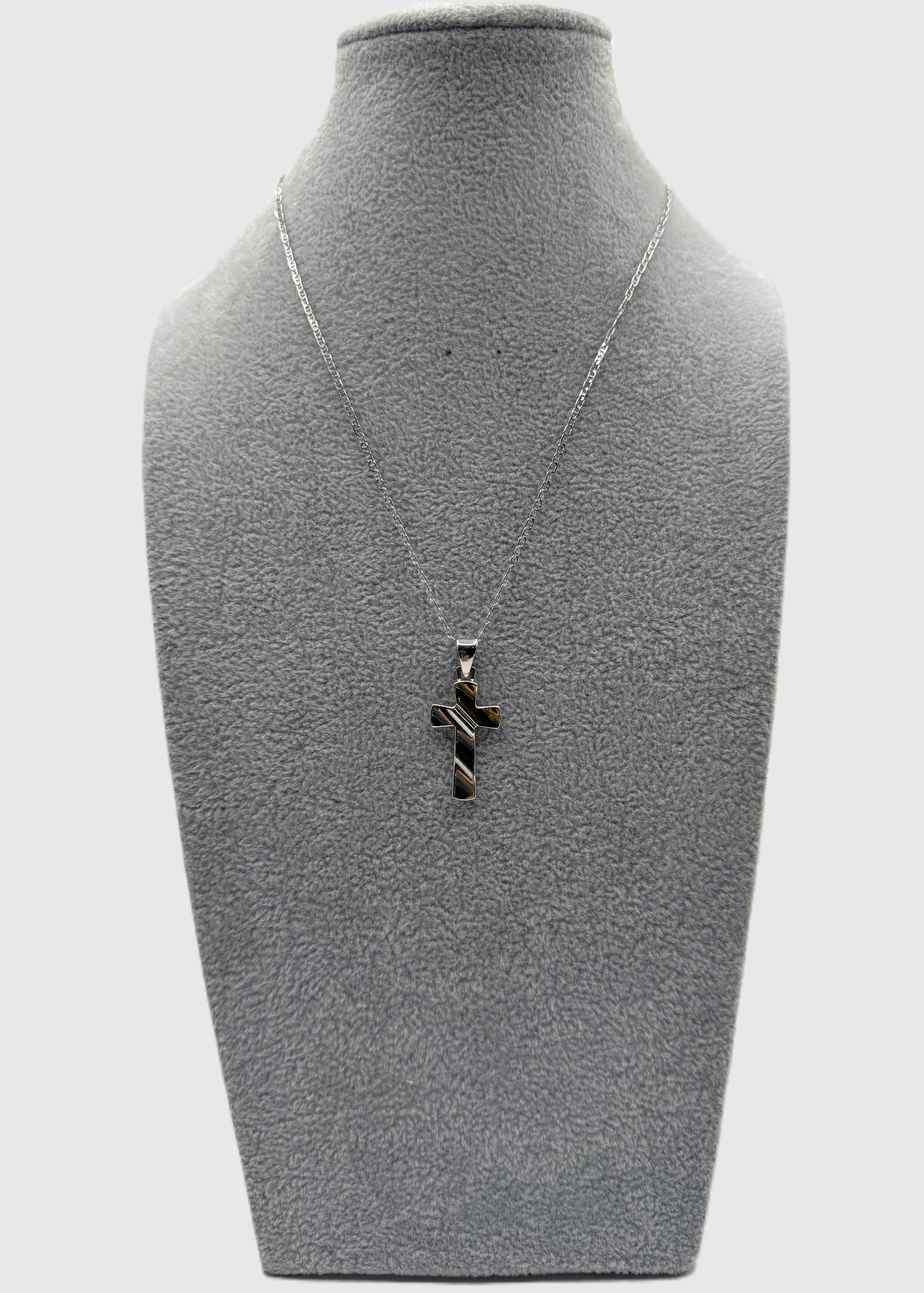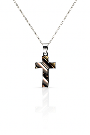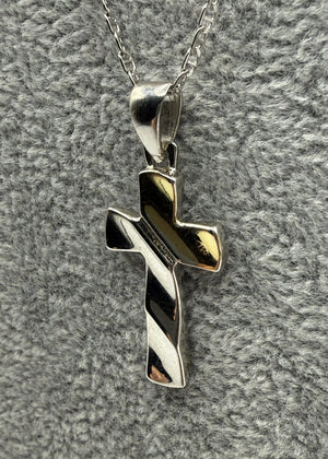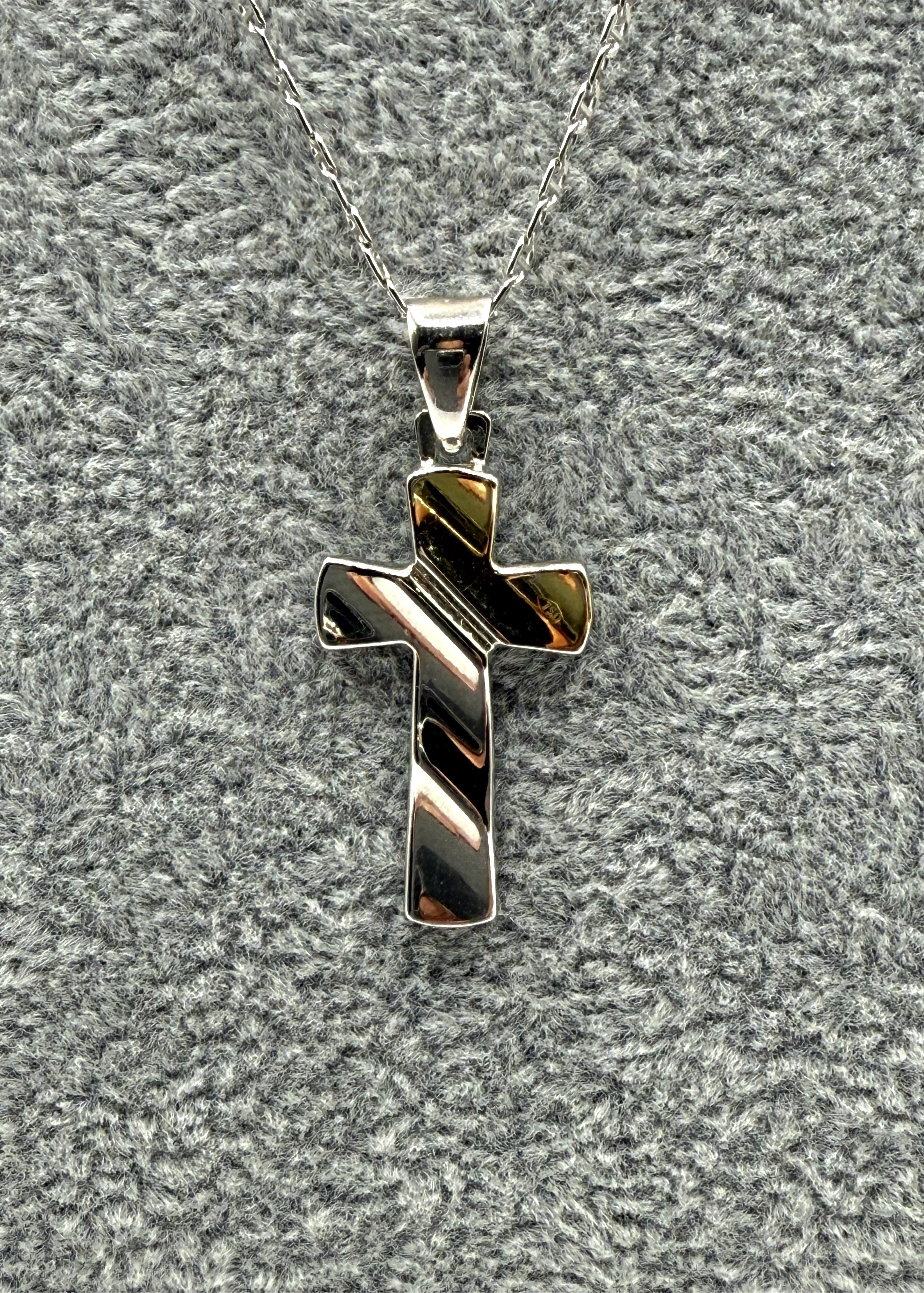 Elegante collana in argento 925 combinato con oro, arricchita da un raffinato ciondolo a forma di crocifisso. Questo pezzo rappresenta un'armoniosa fusione di materiali nobili, ideale per chi ricerca gioielli dal significato spirituale e dal design sofisticato. La lavorazione accurata garantisce durabilità e brillantezza nel tempo. Perfetto come regalo significativo o come accessorio personale che unisce fede e stile.