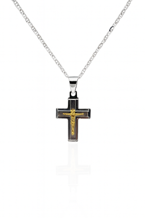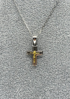 Collana Argento925 e Placcato Oro Con Ciondolo Crocifisso Art.PDUORO1007