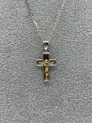 Collana Argento925 e Placcato Oro Con Ciondolo Crocifisso Art.PDUORO1009