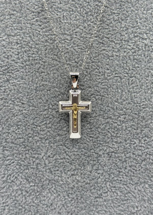 Collana Argento925 e Placcato Oro Con Ciondolo Crocifisso Art.PDUORO1011