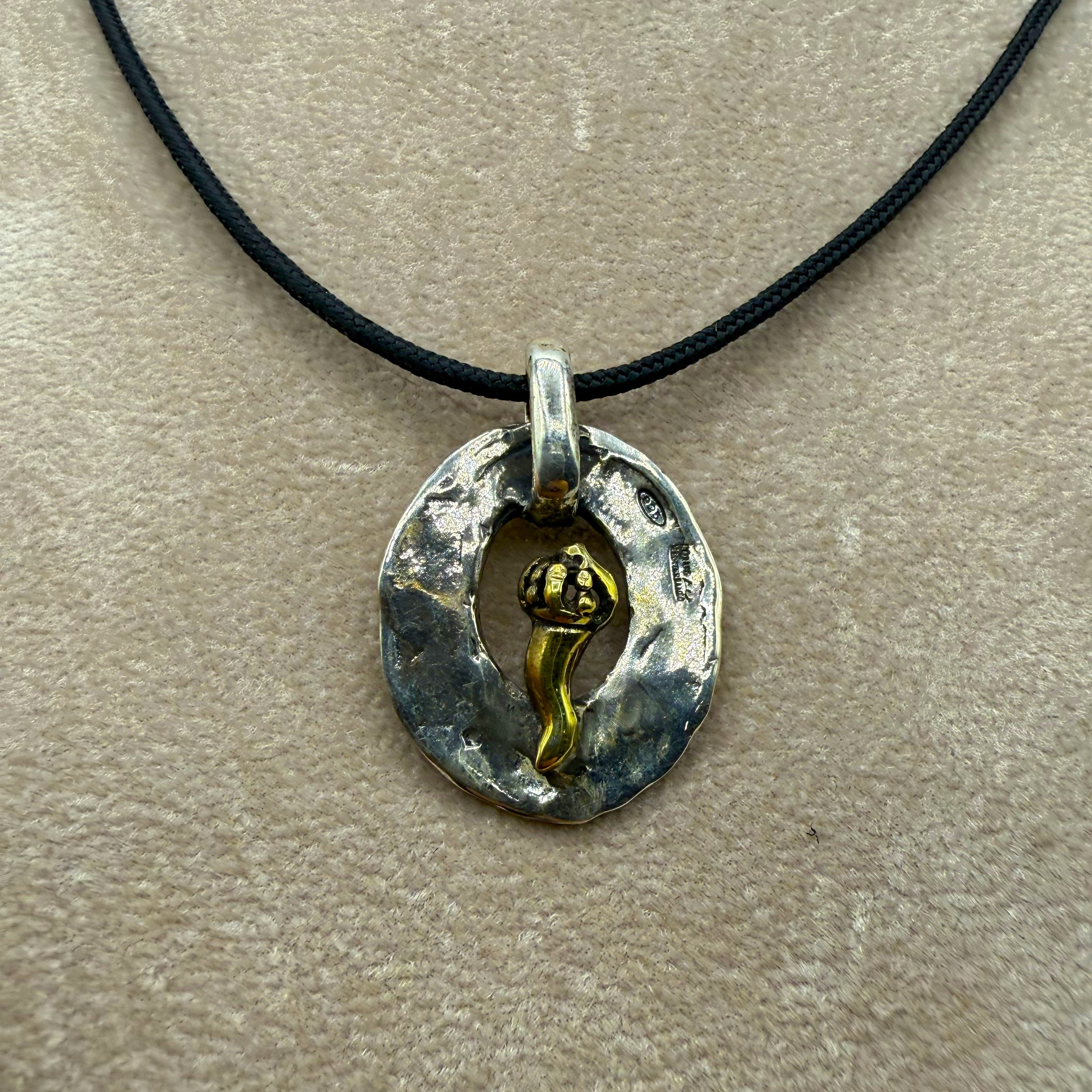 Collana realizzata a mano in argento 925 che omaggia la tradizione attraverso il corno scaramantico, amuleto di protezione dalla tradizione popolare. Ogni creazione artigianale è unica e autentica, lavorata con maestria per garantire qualità e durabilità. L'argento sterling mantiene nel tempo una brillantezza naturale. Un accessorio che unisce spiritualità e bellezza, ideale per chi vuole portare con sé un pezzo di storia e tradizione. Si consiglia di verificare che il pezzo ricevuto possa presentare lievi variazioni rispetto all'immagine, caratteristica propria della lavorazione artigianale.
