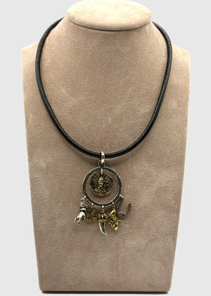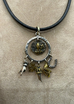 Collana In Argento 925 Con Doppia Faccia Vesuvio e San Gennaro e Charms Portafortuna C45
