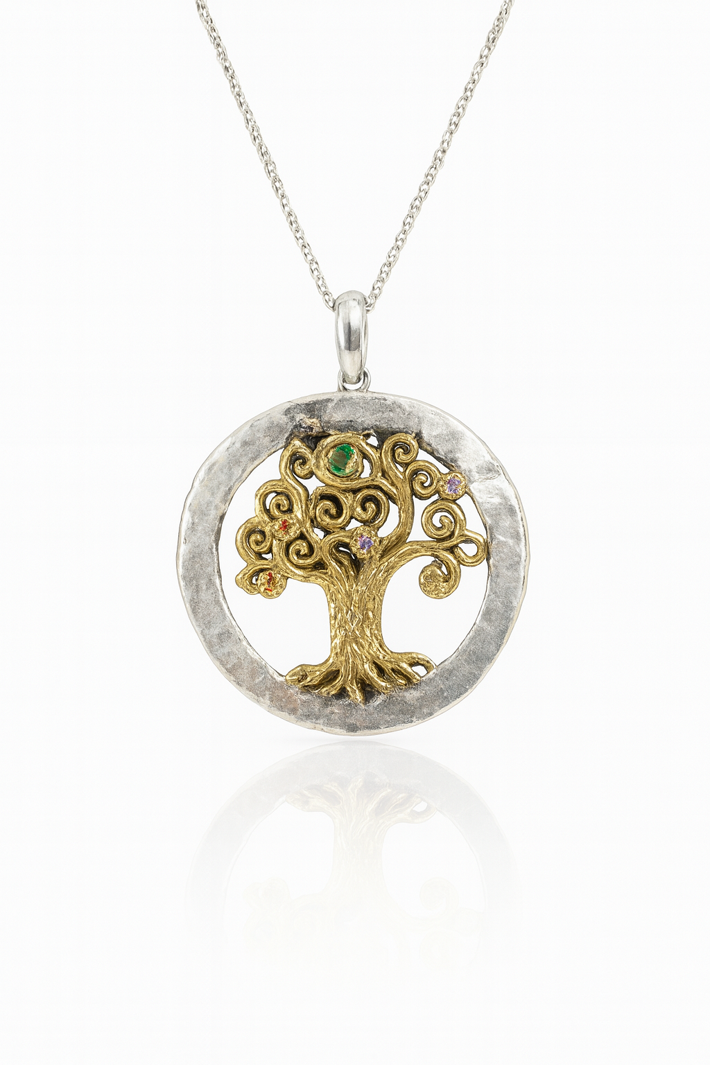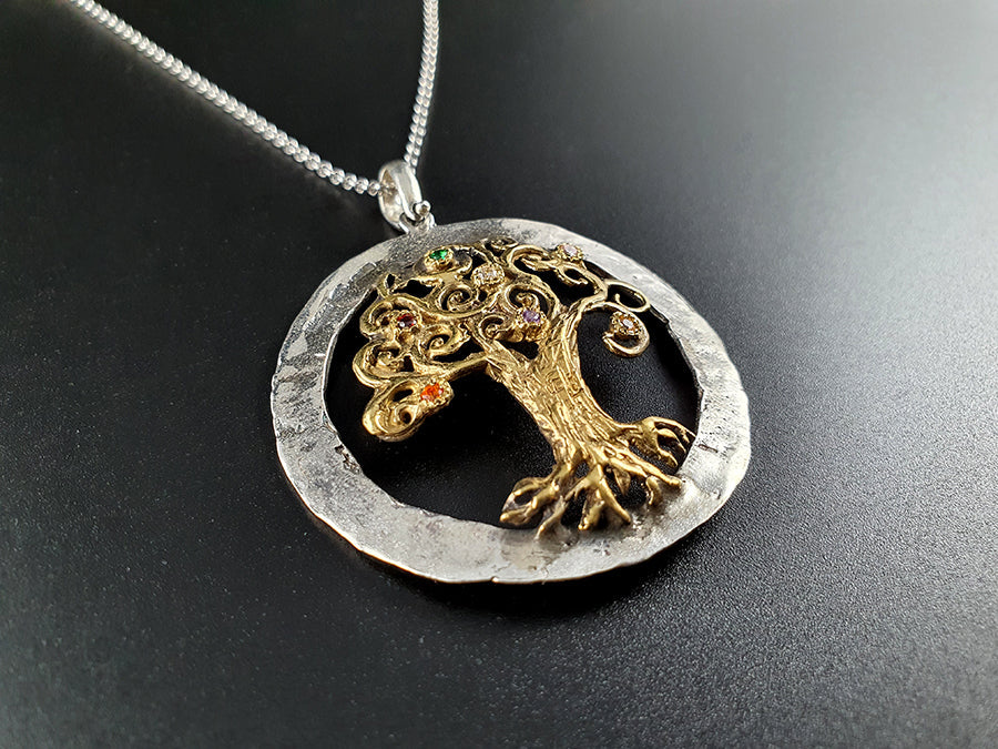 Questa collana in argento 925 nickel free rappresenta Yggdrasill, l’albero della vita, simbolo di fertilità e famiglia. Interamente lavorata a mano, è impreziosita da dettagli in bronzo e zirconi colorati che ne esaltano la profondità e il significato. Un gioiello artigianale dal valore simbolico profondo, perfetto per chi cerca un accessorio elegante che unisca spiritualità e raffinatezza.