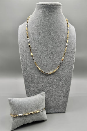 Completo Collana + Bracciale Bicolore Fantasia Rombi Argento925