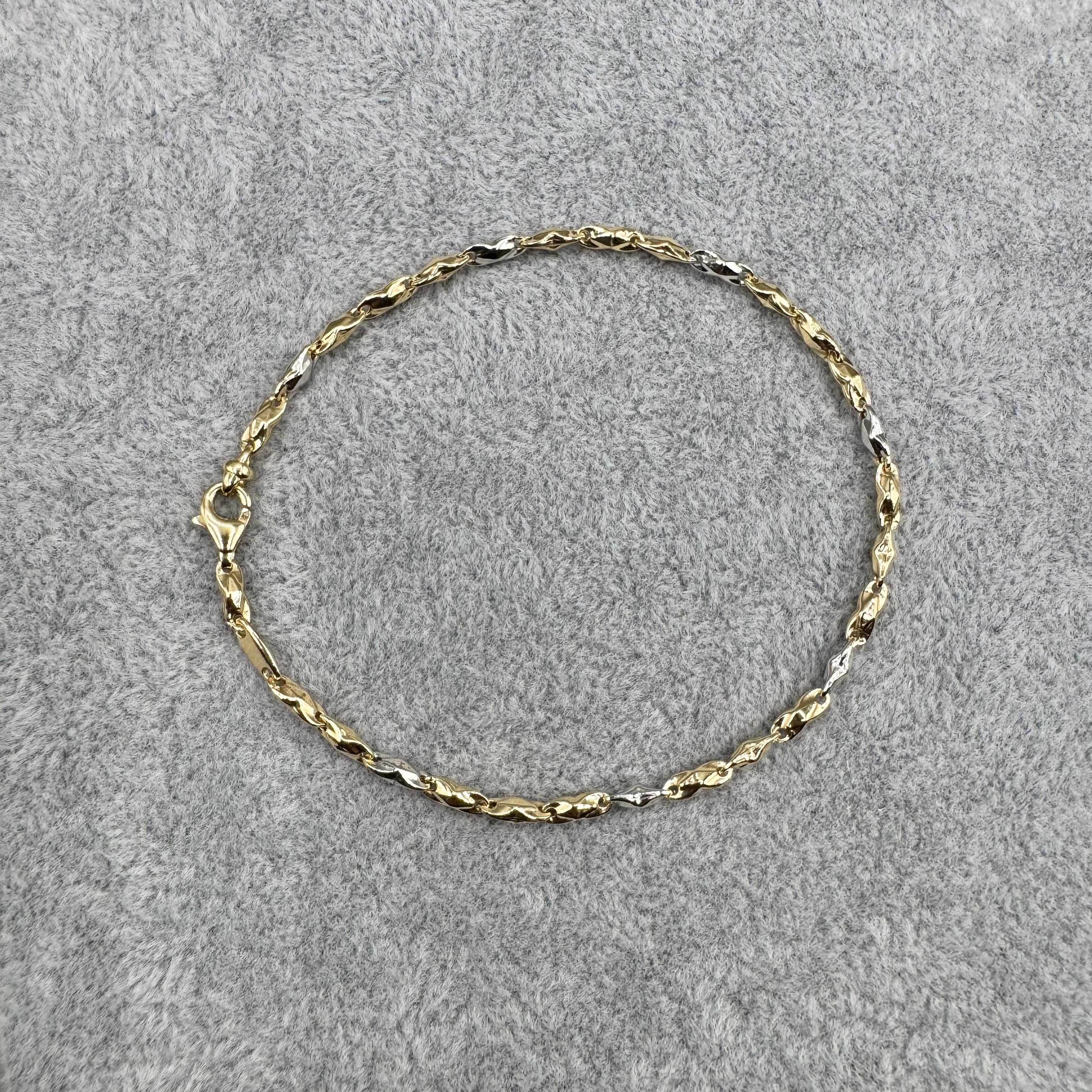 Il design classico del bracciale, con una luminosa finitura alternata color oro, rende questo bracciale un accessorio versatile e senza tempo.
