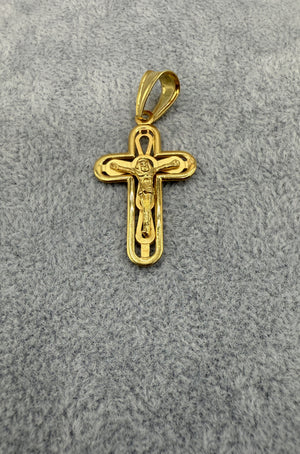 Questo ciondolo, con il crocifisso color oro, è progettato per essere abbinato a qualsiasi collana, offrendo versatilità e stile.