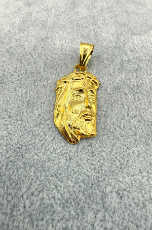 Questo ciondolo presenta un dettagliato design della faccia di Gesù in color oro, realizzato con maestria per catturare ogni dettaglio.