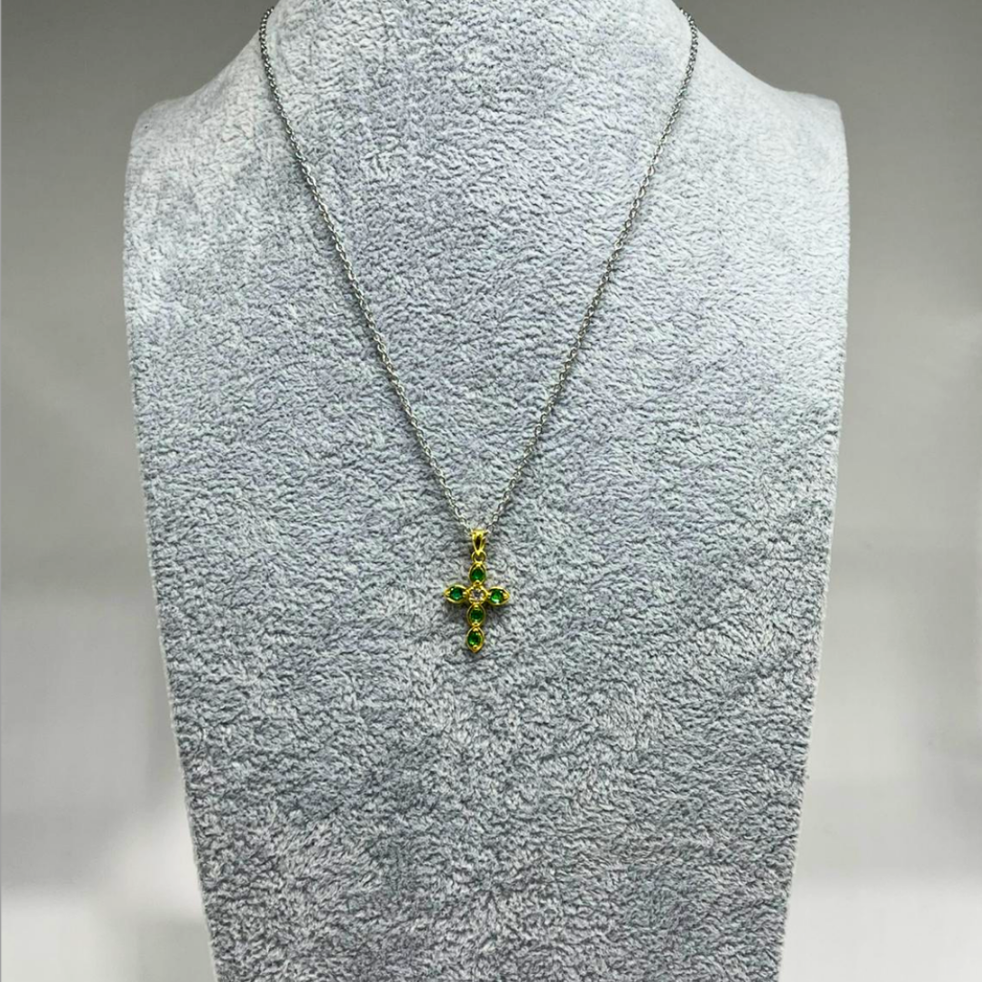 Disponibile in quattro affascinanti combinazioni di colori - argento e bianco, argento e azzurro, oro e blu, e oro e verde - la collana Agata è un simbolo di fede e stile senza tempo.
