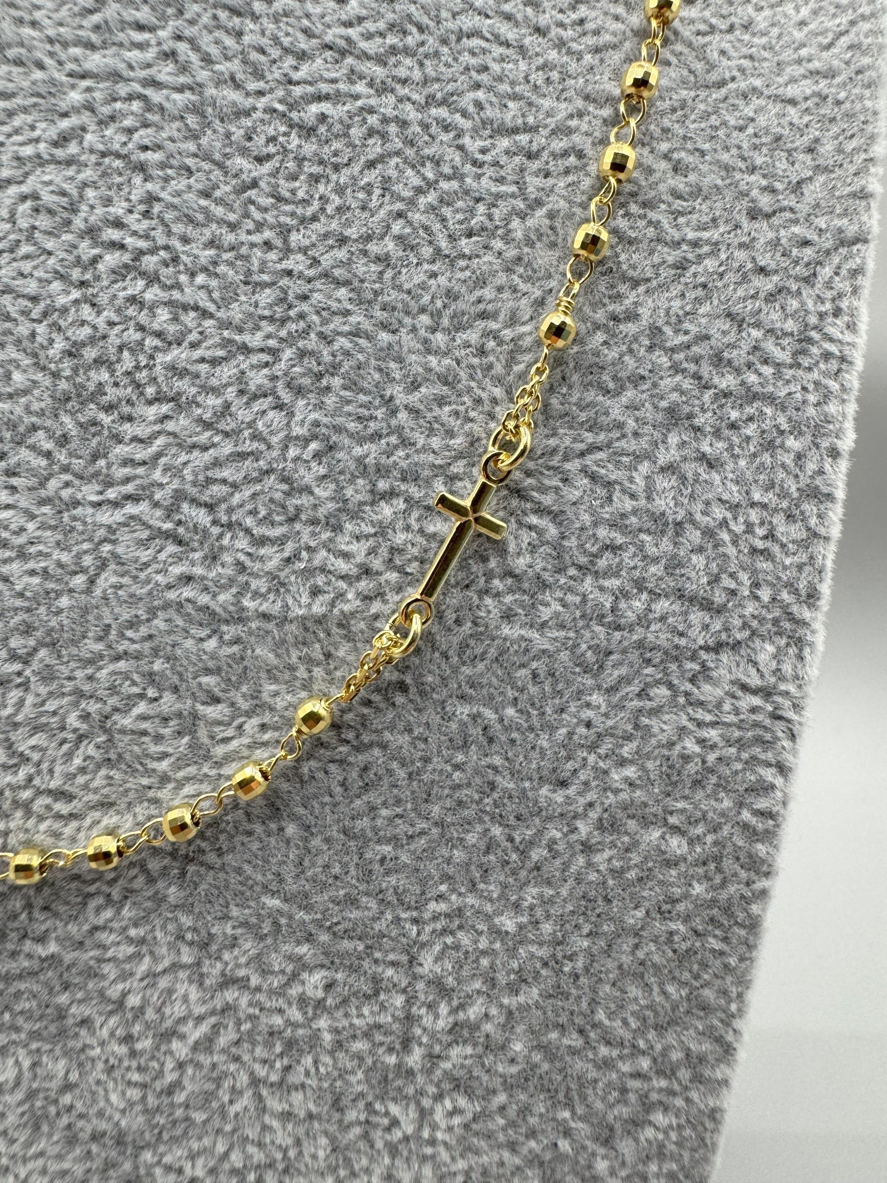 Collana Argento 925 Dorato Rosario Con Crocifisso e Madonnina