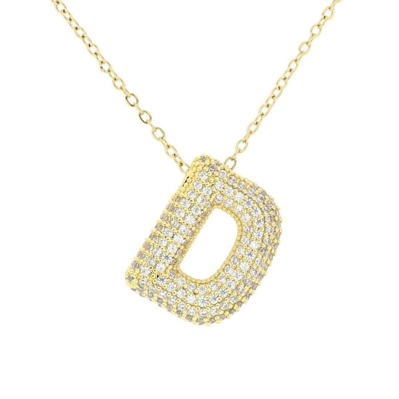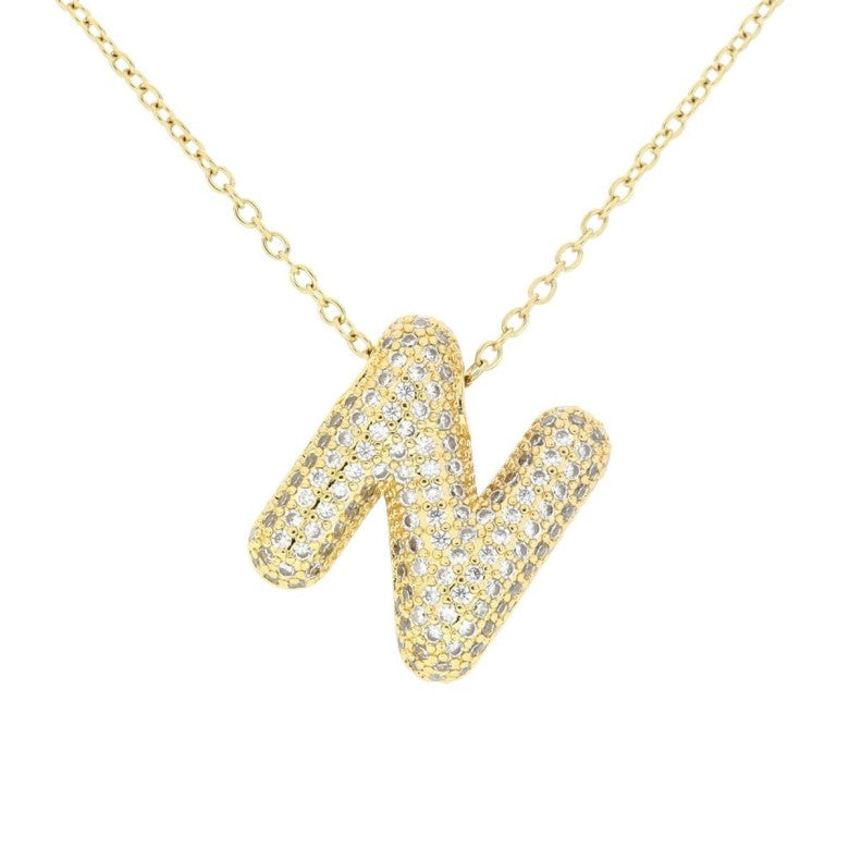Scopri la nostra collana con lettere in Acciao color Oro con strass, un gioiello che unisce lusso e stile iconico.