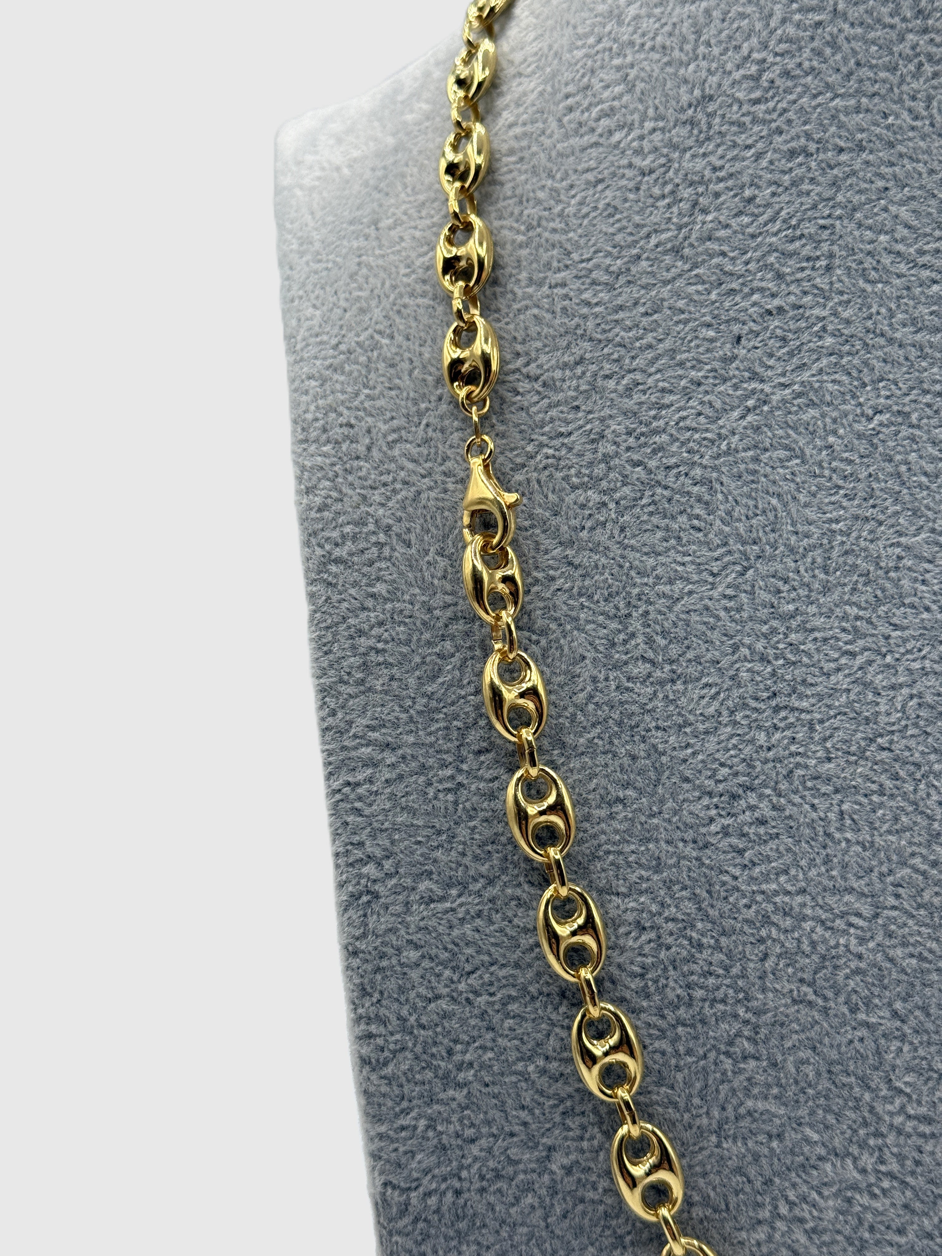 Collana uomo in argento 925 color oro, con una lunga catena composta da intricati intrecci di maglie + Ciondolo crocifisso, aggiunge un tocco di eleganza e originalità al tuo look maschile.
