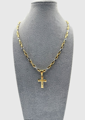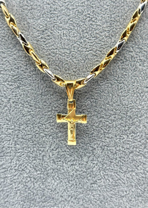 Collana Uomo Bicolore 5 mm Con Ciondolo Crocifisso Argento 925