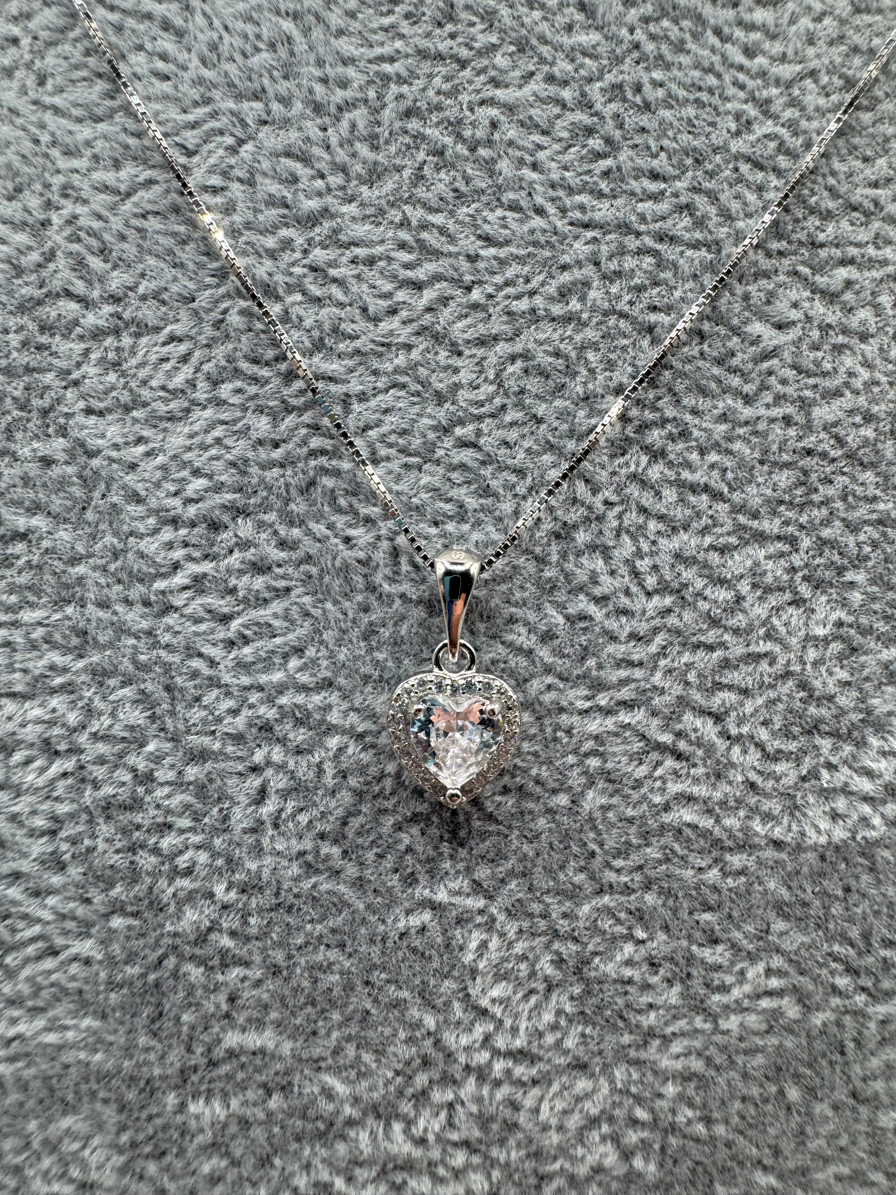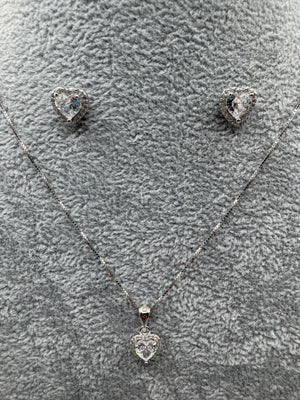 Completo in argento 925 composto da collana + orecchini a forma di cuore con zircone.