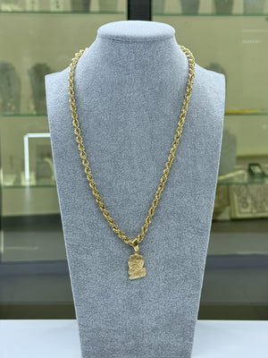 Questo ciondolo presenta un dettagliato design della faccia di Padre Pio in color oro, una semplice funetta color oro