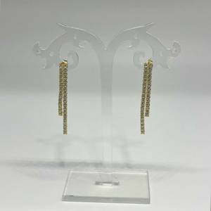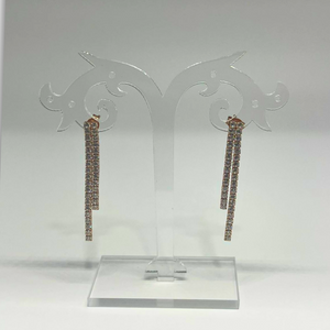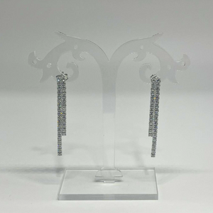 Realizzati in argento 925, questi orecchini pendenti presentano una doppia linea di zirconi che scende a cascate, con una più lunga e una più corta.